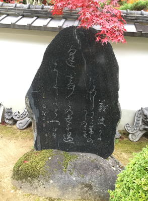 ●伊勢寺の境内には、「古今集」の伊勢の歌「見る人も なき山里の 桜花 ほかの散りなむ のちぞ咲かまし」(見る人もいない寂しい山里の桜の花よ。いっそほかの花が散ってしまった後に咲けばいいのにねえ。)の歌碑もあります。 |