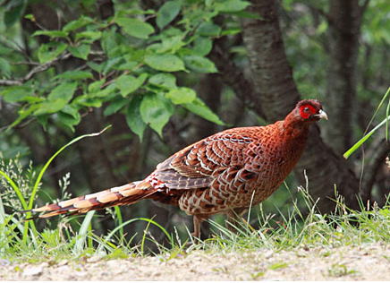 ●「山鳥」は日本の山地にすむキジ科の野鳥です。雄は全長120㎝前後で、自分の体より長い90㎝にも達する尾を持っています。 |
