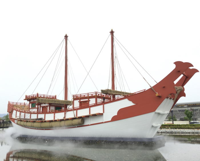 ●篁が渡航を拒否した遣唐使船は、嵐にあうと沈没の危険が高く、助かっても思わぬ土地に漂着しました。 |